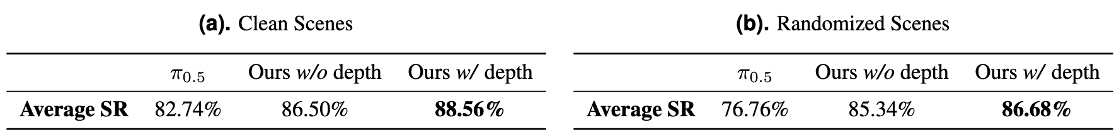 为支撑这一研究,蚂蚁灵波科技构建了覆盖9种主流双臂机器人构型的20000小时真实训练数据集,包括AgileX Cobot Magic、Galaxea R1Pro等机型。在上海交通大学开源的GM-100具身评测基准测试中,LingBot-VLA在3个不同机器人平台上的跨本体泛化平均成功率从13.0%提升至15.7%(无深度信息)。引入深度信息后,其空间感知能力进一步增强,平均成功率攀升至17.3%。