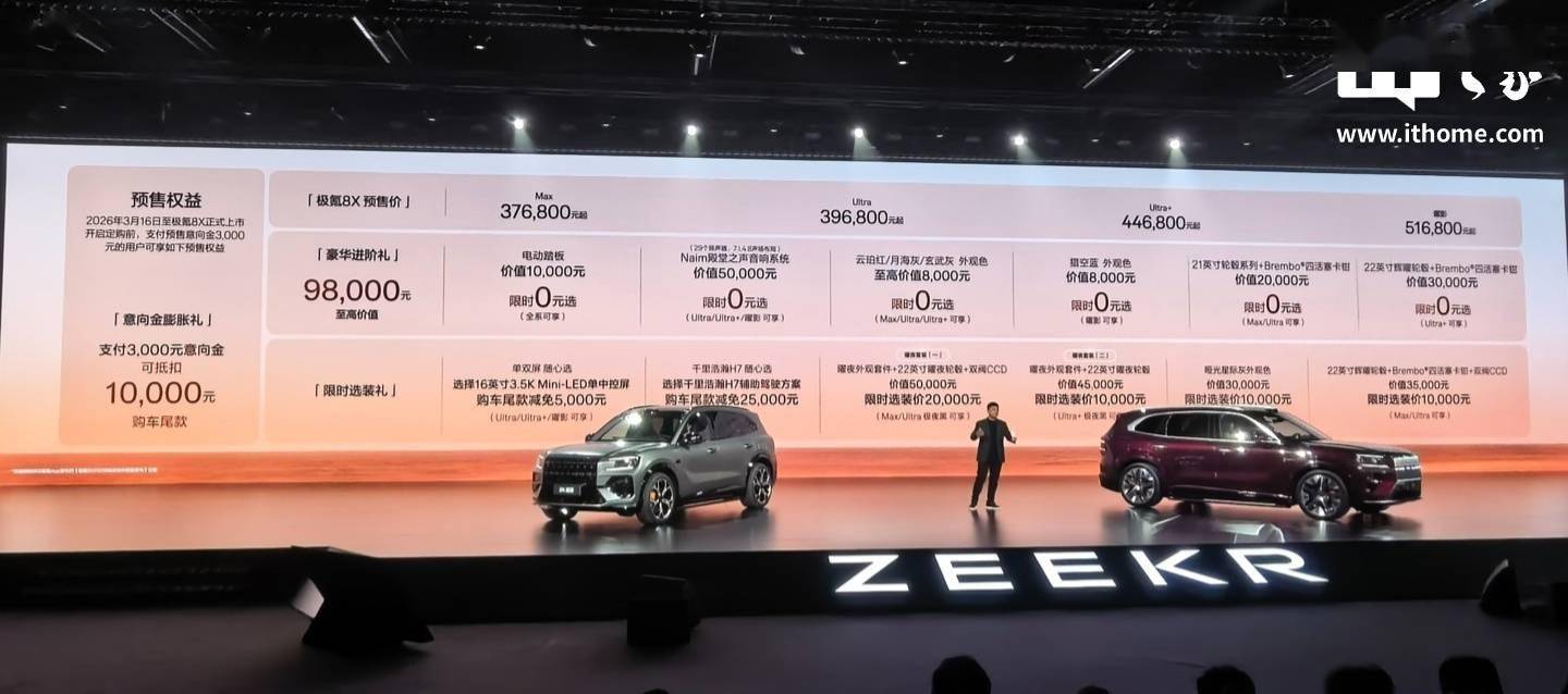 极氪品牌旗下全新车型极氪8X正式开启预售,起售价定为37.68万元。这款新车在技术发布会上亮相,凭借其先进的混动架构和多项行业首创技术引发关注。